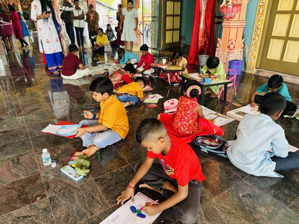 காலை 8.30 மணி அளவில் தொடங்கிய இந்த நிகழ்ச்சியில், வண்ணம் தீட்டும் போட்டி, பாடல் திறன் போட்டி, பாரம்பரிய உடை போட்டி, கோலப் போட்டி, தோரணம் பின்னும் போட்டி, நடனப் போட்டி, பூச்சரம் தொடுக்கும் போட்டி, தெய்வ அலங்காரப் போட்டி ஆகியன இடம் பெற்றன.