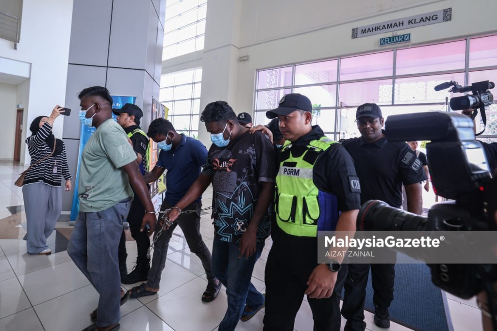 39 வயது பி.கோபிநாத், 38 வயது பி. கலையரசன் மற்றும் 44 வயது ஏ. மகேந்திரன் ஆகியோரே குற்றஞ்சாட்டப்பட்ட நபர்கள் ஆவர். மாஜிஸ்திரேட் அஸிலா மாட் முன்னிலையில் அந்த மூவரும் நிறுத்தப்பட்டு குற்றச்சாட்டு வாசிக்கப்பட்டது.