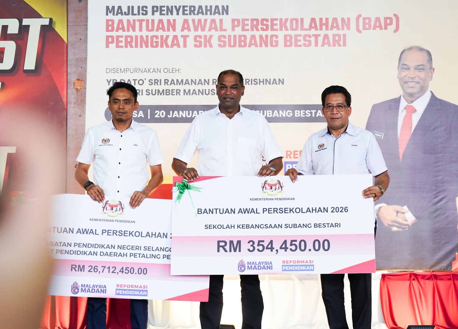 ஜனவரி 11ஆம் தேதி முதல் ஒவ்வொரு மாணவருக்கும் தலா 150 ரிங்கிட் உதவித்தொகை கட்டம் கட்டமாக வழங்கப்பட்டு வருகிறது. இனம், மதம் அல்லது குடும்பப் பின்னணி என எவ்வித பாகுபாடுமின்றி அனைத்து மலேசிய மாணவர்களுக்கும் சமமான கல்வி வாய்ப்பை உறுதிச் செய்வதே இத்திட்டத்தின் முக்கிய நோக்கமாகும். குறிப்பாக, சுபாங் பெஸ்தாரி தேசியப் பள்ளியில் மட்டும் 2,363 மாணவர்கள் இதன் மூலம் சுமார் 3 லட்சத்து 55,000 ரிங்கிட் நிதியுதவியைப் பெறுகின்றனர் என்று டத்தோ ஶ்ரீ ரமணன் குறிப்பிட்டார்.
