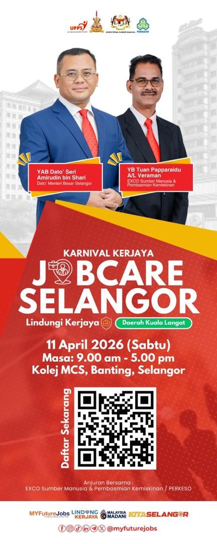 சிலாங்கூர் மாநில ஆட்சிக்குழு உறுப்பினர் வீ. பாபாராய்டு தலைமையில், நாளை ஏப்ரல் 11 சனிக்கிழமை காலை 9 மணி முதல் மாலை 5 மணி வரை பந்திங் எம்.சி.எஸ் கல்லூரியில் பிரம்மாண்டமான ஜாப்-கேர் சிலாங்கூர்' வேலைவாய்ப்பு முகாம் நடைபெறுகிறது.