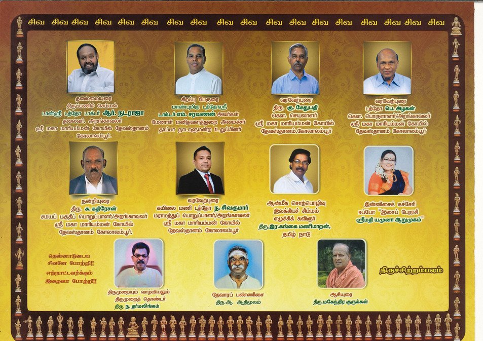 கோலாலம்பூர் ஸ்ரீ மகா மாரியம்மன் தேவஸ்தானம் மற்றும் மகிமா இணை ஏற்பாட்டில் திருவிளங்கு சைவத் திருமுறை மாநாடு இருநாள் எழில் கமழும் திருநாளாக நாளை ஏப்ரல் 27 ஆம் தேதி சனிக்கிழமையும், 28 ஆம் தேதி ஞாயிற்றுக்கிழமையும் கோலாலம்பூர் ஸ்ரீ மகா மாரியம்மன் கோவில், பங்குனான் ஸ்ரீ மகா மாரியம்மன், மண்டபம், 5 ஆவது மாடியில் காலை 9.30 மணி முதல் இரவு 7.30 மணி வரையில் வெகு விமரிசையாக நடைபெறவிருக்கிறது.