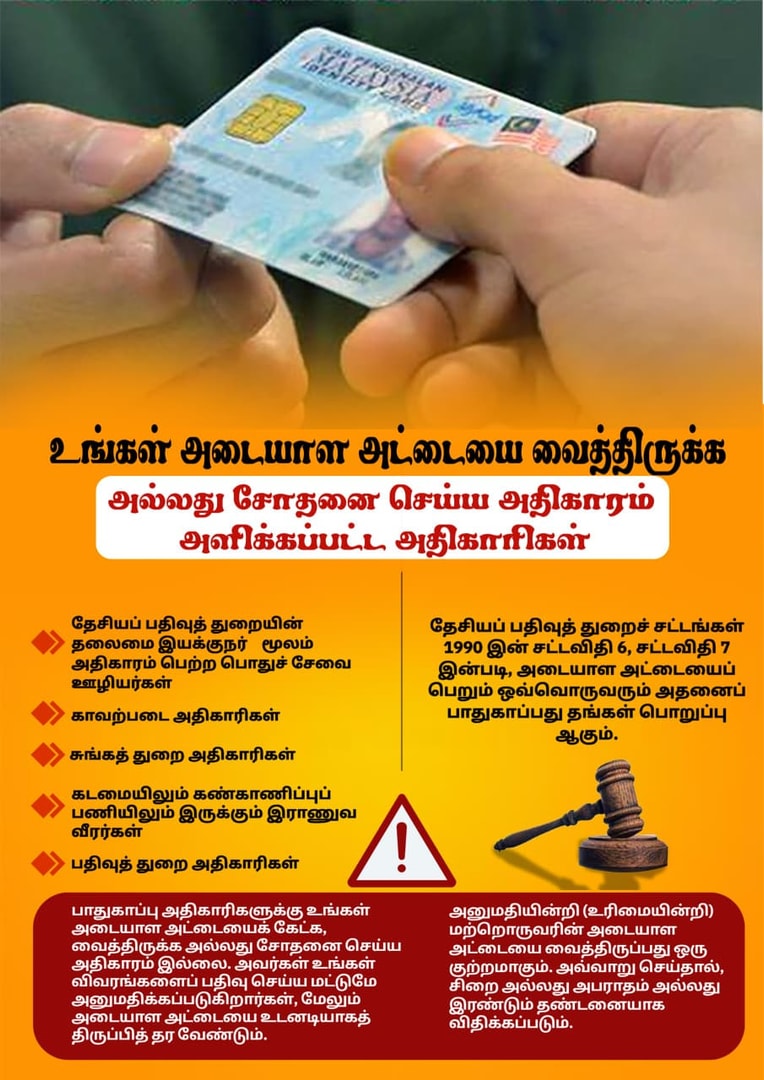 உங்கள் அடையாள அட்டையை வைத்திருக்க அல்லது சோதனை செய்ய அதிகாரம் அளிக்கப்பட்ட அதிகாரிகள்