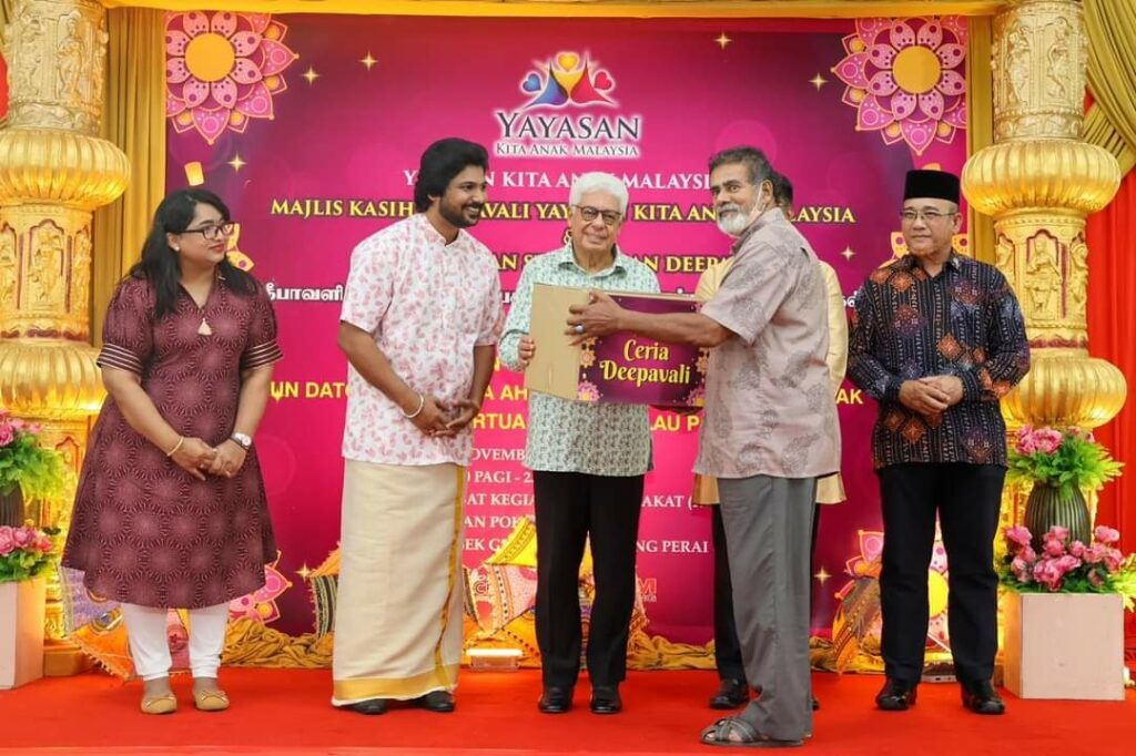 அறவாரியத்தின் இந்த அன்பளிப்பு கூடைகளை புவநீதன் இளங்கோவனுடன் இணைந்து பினாங்கு ஆளுநர் எடுத்து வழங்கினார்.