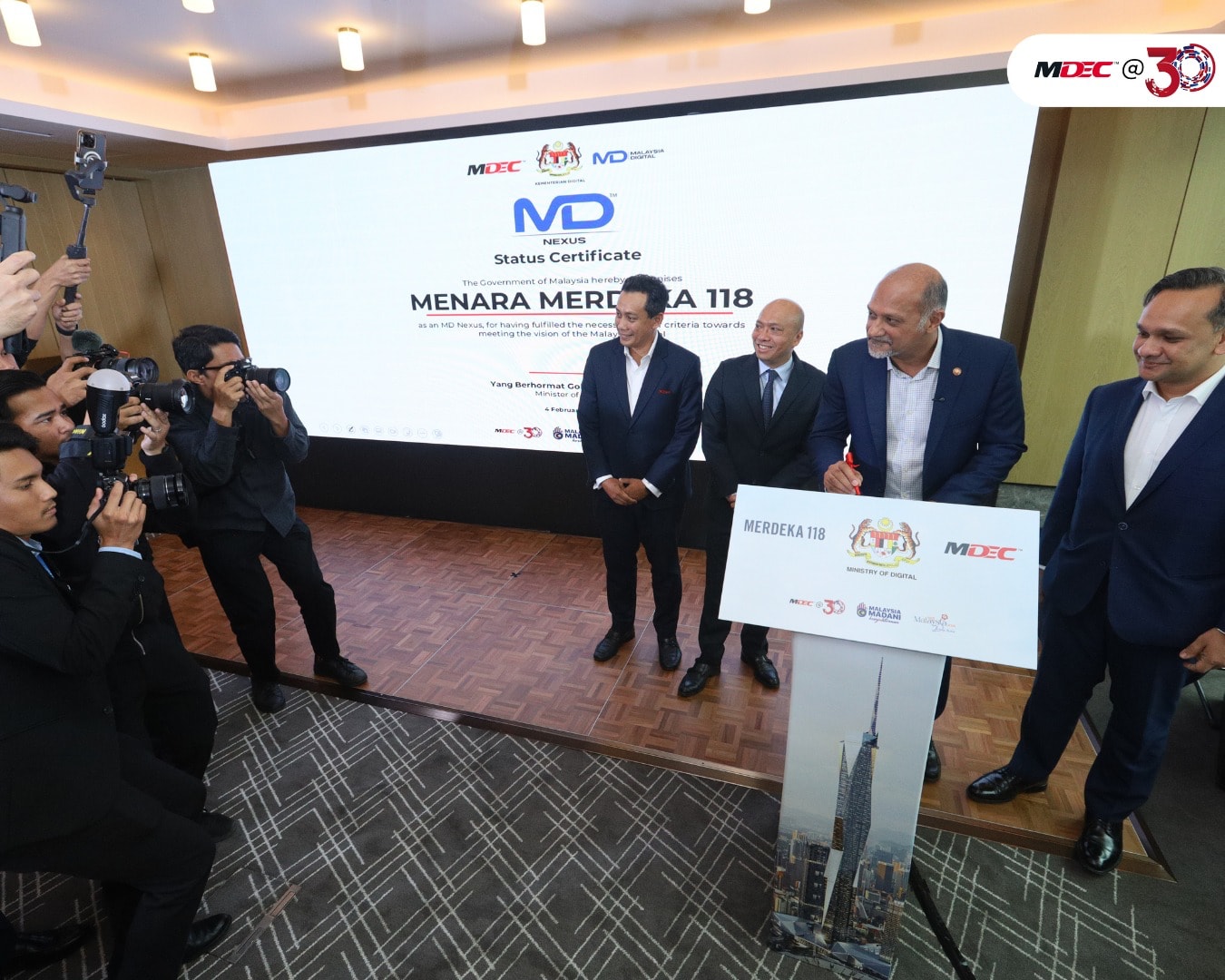 மலேசியாவின் இலக்கவியல் எதிர்காலத்தில் ஒரு வரலாற்றுச் சாதனையாக, கோலாலம்பூரில் உள்ள மெர்டேக்கா 118 கோபுரம் நாட்டின் முதல் 'MD Nexus' ஆக அதிகாரப்பூர்வமாக அறிவிக்கப்பட்டுள்ளது என்று இலக்கவியல் அமைச்சர் கோபிந்த் சிங் டியோ தெரிவித்துள்ளார்.