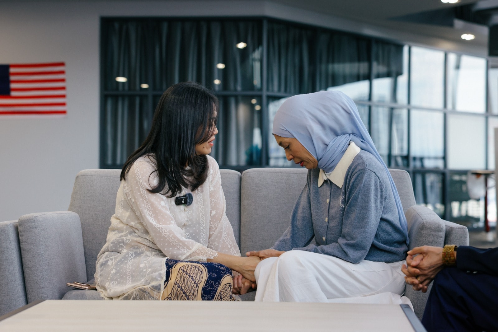 முன்னதாக, அங்கசாபுரியில் தமது அலுவலகத்தில் தொடர்பு துணையமைச்சர் தியோ நீ சிங், பீனாஸ் எனும் தேசிய திரைப்பட மேம்பாடு கழகத்தின் ‘மடானி கலை நலன் சந்திப்பு’ திட்டத்தின் வாயிலாக அமிசாவை சந்தித்து ஆறுதல் தெரிவித்தார்.