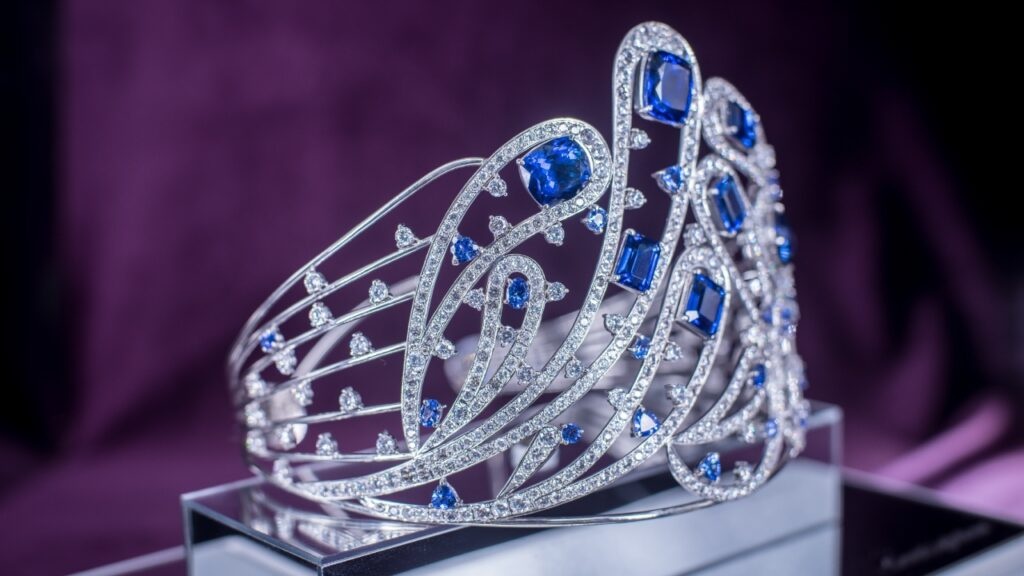 420 கிராம் எடைக் கொண்ட இந்த 'Queen Of Kilimanjaro’ கிரீடம், 27 நீல நிற தான்சானைட் கற்கள், 562 வைரங்கள் மற்றும் 365.5 கிராம் எடையிலான வெண் தங்கம் என ஒவ்வொன்றும் பார்த்து பார்த்து பொறிக்கப்பட்டு வடிவமைக்கப்பட்டு ஈடு இணையற்ற ஓர் அவதாரத்தை பெற்றுள்ளது.