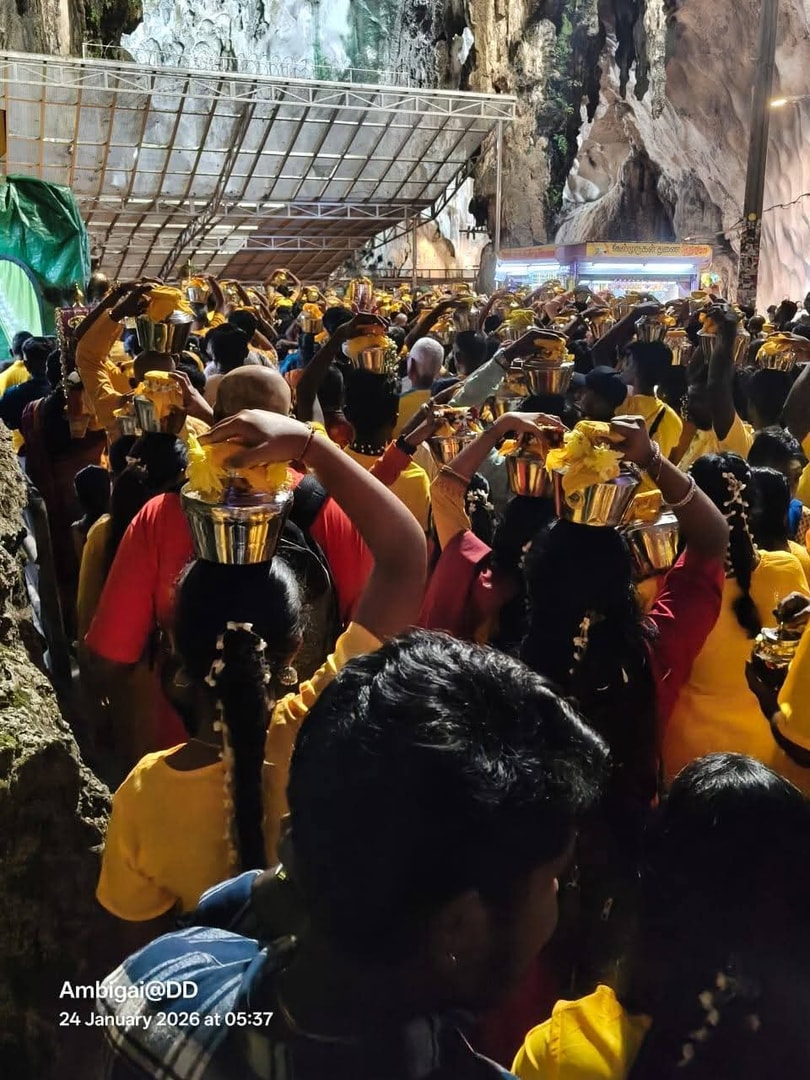 பத்துமலையின் அந்த 272 வண்ணப் படிகளிலும், எங்கு நோக்கினும் பக்திப் பெரு வெள்ளம்! ஆயிரக்கணக்கான பக்தர்கள் தங்களின் சிரசின் மீது பால் செம்புகளைச் சுமந்தவாறு, ஒருமித்த குரலில் 'வேல்! வேல்!' என்று முழக்கமிட்டக் காட்சி, பார்ப்பவர் எவரையும் மெய்சிலிர்க்க வைத்தது.