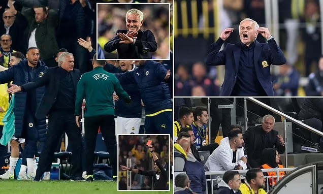 Fenerbahce இல் Man Utd 1-1 என சமநிலையில் இருந்ததால் ஜோஸ் மொரின்ஹோ வெளியேற்றப்பட்டதாக அறிக்கை; கிறிஸ்டியன் எரிக்சன் பார்வையாளர்களை வழிநடத்தினார்; யூசெஃப் என்-நெசிரி இடைவேளைக்குப் பிறகு புரவலர்களுக்குச் சமன் செய்தார்; Fenerbahce அபராதம் மறுக்கப்பட்ட பின்னர் Mourinho எதிர்ப்புகளுக்கு சிவப்பு கண்டார்; யூரோபா லீக்கில் யுனைடெட் வெற்றியின்றி உள்ளது