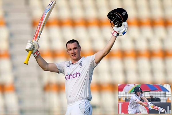 பாகிஸ்தான் அணிக்கு எதிரான டெஸ்டில் இங்கிலாந்து வீரர் ஹாரி புரூக் சாதனை சதம் விளாசினார்.