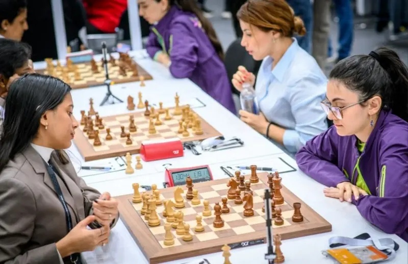 ஹரிகா துரோணவல்லி, வைஷாலி ஆர், திவ்யா தேஷ்முக், வந்திகா அகர்வால் மற்றும் தானியா சச்தேவ் ஆகியோரை கொண்ட இந்திய பெண்கள் அணிக்கு, மகாராஷ்ட்ராவை சேர்ந்த அபிஜித் குன்டே கேப்டனாக இருந்தார். இந்திய பெண்கள் அணி மிகவும் வலுவாக தனது ஆட்டத்தைத் தொடங்கியது. ஏழாவது சுற்று வரை தோற்காமல் போட்டியில் முன்னிலை வகித்து வந்தது. எட்டாவது சுற்றில் தடுமாறிய இந்திய அணி, போலந்திடம் தோற்றது. பின்னர் அமெரிக்க அணியுடன் டிரா செய்தது. இறுதிச் சுற்றுக்கு முன்னேறிய இந்தியா, கஜகஸ்தானுடன் சமநிலையில் இருந்தது.