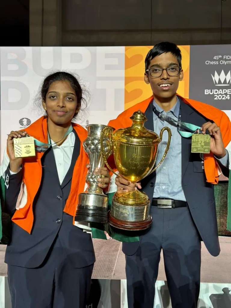 செஸ் ஒலிம்பியாட் போட்டிகளில் இந்தியா தங்கம் வெல்வது இதுவே முதல் முறை. இரண்டு பிரிவுகளிலும் சிறப்பாக ஆடும் அணிக்கு ‘கப்ரிந்தஷ்விலி கோப்பை’ வழங்கப்படும். 2022-ஆம் ஆண்டு இந்தக் கோப்பையை பெற்றிருந்த இந்தியா, இந்த ஆண்டு அதைத் தக்க வைத்துள்ளது. அது மட்டுமல்லாமல் இந்திய வீரர்கள் அர்ஜுன் எரிகைசி, குகேஷ் டி, திவ்யா தேஷ்முக், வந்திகா அக்ராவால் ஆகியோர் வெவ்வேறு நிலைகளில் தனி நபர் ஆட்டத்துக்கு தங்கப் பதக்கங்கள் வென்றுள்ளனர்.