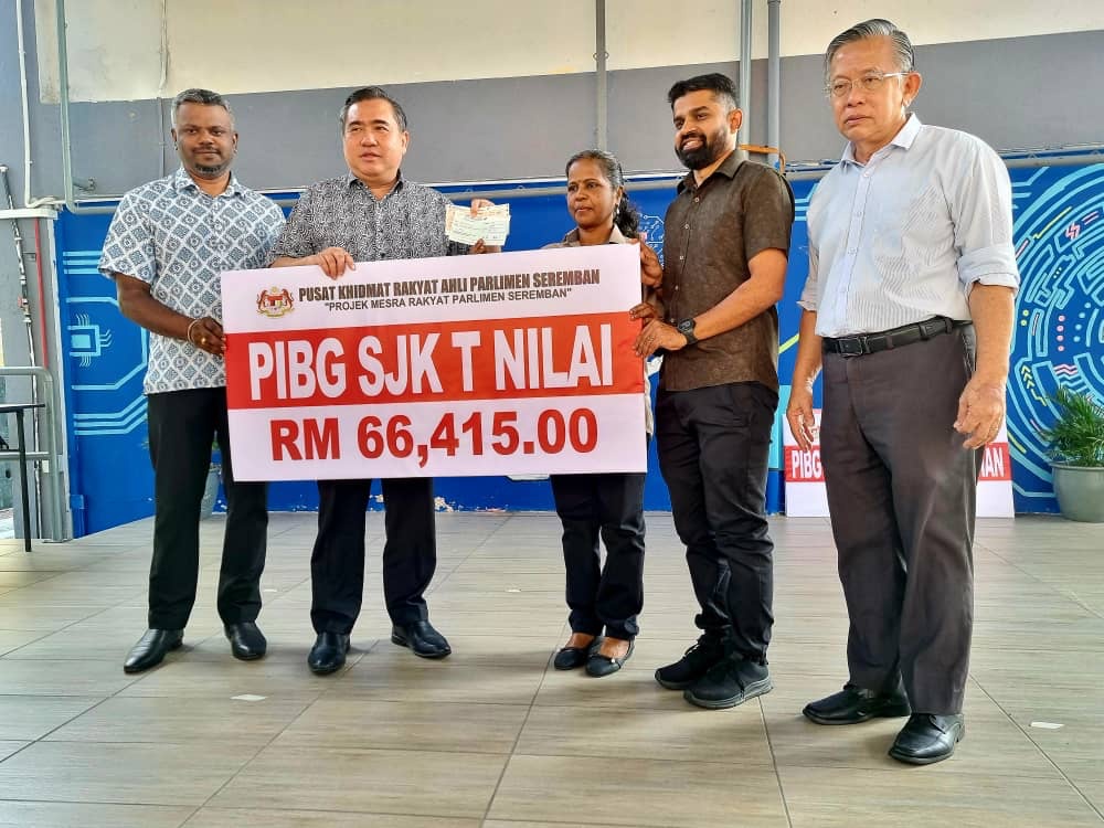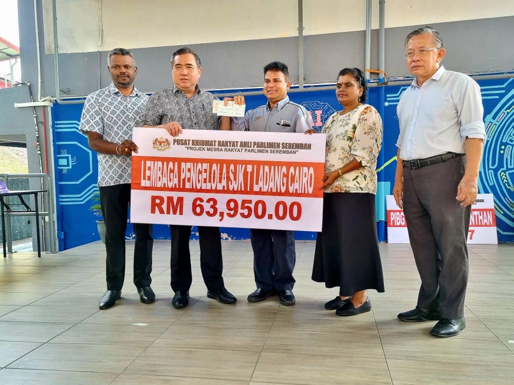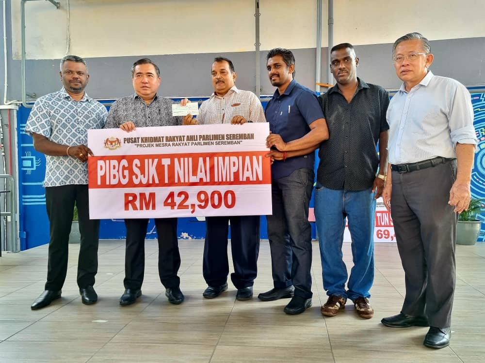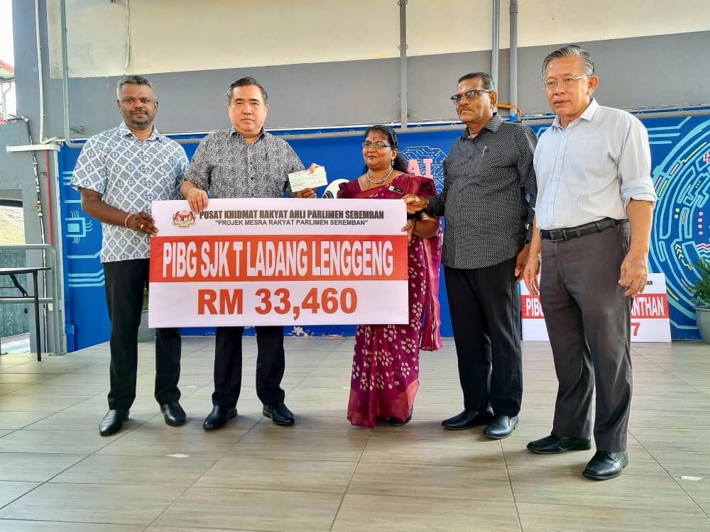 லோபாக் தமிழ்ப்பள்ளிக்கு 86 ஆயிரத்து 280 ரிங்கிட், லெங்கேங் தோட்டத் தமிழ்ப்பள்ளிக்கு 33 ஆயிரத்து 460 ரிங்கிட் மானியம், மந்தின் கேய்ரோ தோட்டத் தமிழ்ப்பள்ளிக்கு 63 ஆயிரத்து 950 ரிங்கிட் மானியம், நீலாய் இம்பியான் தமிழ்ப்பள்ளிக்கு 42 ஆயிரத்து 900 ரிங்கிட் மானியம், பாஜம் துன் சம்பந்தன் தமிழ்ப்பள்ளிக்கு 69 ஆயிரத்து 467 ரிங்கிட் மானியம், நீலாய் தமிழ்ப்பள்ளிக்கு 66 ஆயிரத்து 415 ரிங்கிட் மானியம் என 6 தமிழ்ப்பள்ளிகளின் பெற்றோர் ஆசிரியர் சங்கப் பொறுப்பாளர்களிடம் அந்தோணி லோக் மாதிரி காசோலைகளை ஒப்படைத்தார்.