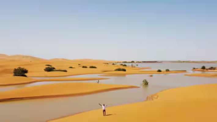 உலகின் மிகப்பெரிய பாலைவனம் மற்றும் அதிக வெப்பம் உள்ள பகுதியான சஹாரா பாலைவனத்தில் கனமழை மற்றும் வெள்ளம் ஏற்பட்டுள்ளது. ஆண்டு முழுவதும் சராசரியாக 5 மி.மீ மழை பெய்துள்ளது. மழை பெய்யாத இந்த பாலைவனத்தில் கனமழை பெய்து வருவது வினோதமாக உள்ளது. ஆனால் வெள்ளம் வரும் அளவில் மழை பெய்து வருவது வானிலை நிபுணர்களை ஆச்சரியத்தில் ஆழ்த்தியுள்ளது. கடந்த 50 ஆண்டுகளில், சகயா பாலைவனத்தில் வரலாறு காணாத அளவில் மழை பெய்துள்ளது. இந்த அரிய மழை மற்றும் வெள்ளப்பெருக்குகள் பூமியில் பாரிய பேரழிவுகளின் அறிகுறியாக இருப்பதாக வானிலை ஆய்வாளர்கள் கவலை தெரிவித்துள்ளனர்.