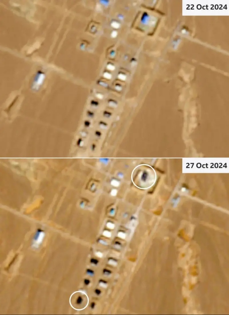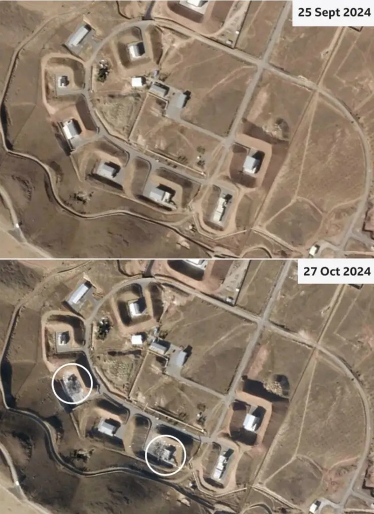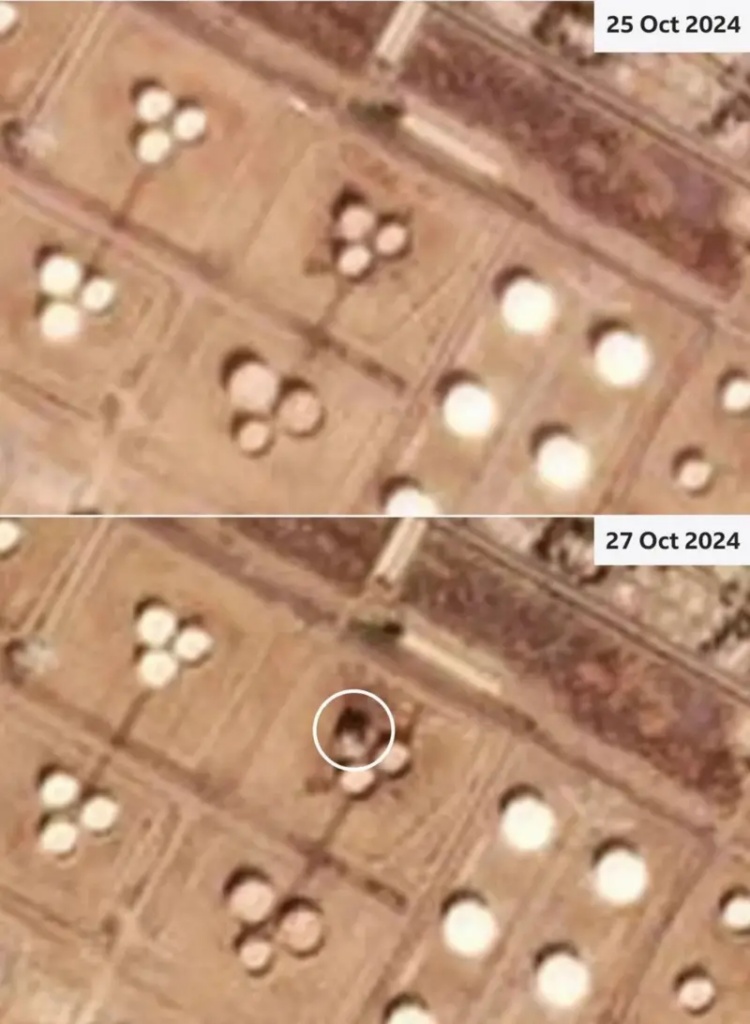 ரேடார் பாதுகாப்பு அமைப்பு என நிபுணர்களால் கண்டறியப்படும் இடம் ஒன்று தாக்கப்பட்டிருப்பதை செயற்கைக்கோள் படங்கள் மூலம் காண முடிகிறது.
