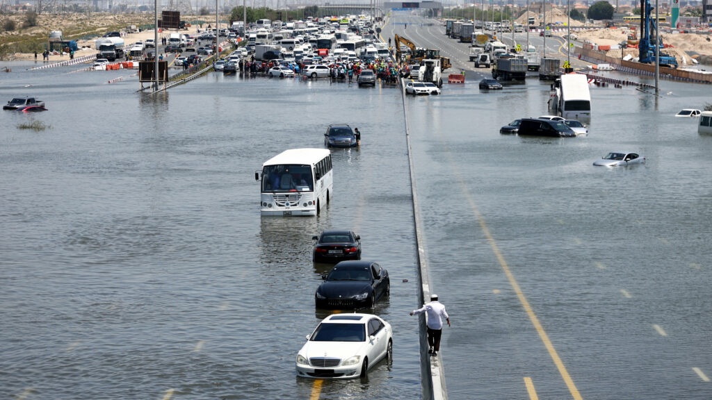 துபாய் என்றாலே வெயில் சுட்டெரிக்கும் என்று தான் கேள்விப்பட்டிருப்போம். ஆனால் அங்கு ஒரே நாளில் கொட்டிதீர்த்த கனமழையால் தற்போது ஒட்டுமொத்த துபாயும் வெள்ளத்தில் தத்தளிக்கிறது. ஒரு ஆண்டில் பெய்ய வேண்டிய மழை ஒரே நாளில் கொட்டிதீர்த்ததே இந்த பெரு வெள்ளத்திற்கு காரணமாக கூறப்படுகிறது. சாலைகள், வீடுகள், வணிக வளாகங்கள் அனைத்தும் வெள்ளத்தில் மக்களின் இயல்பு வாழ்க்கை கடுமையாக பாதிக்கப்பட்டு உள்ளது.