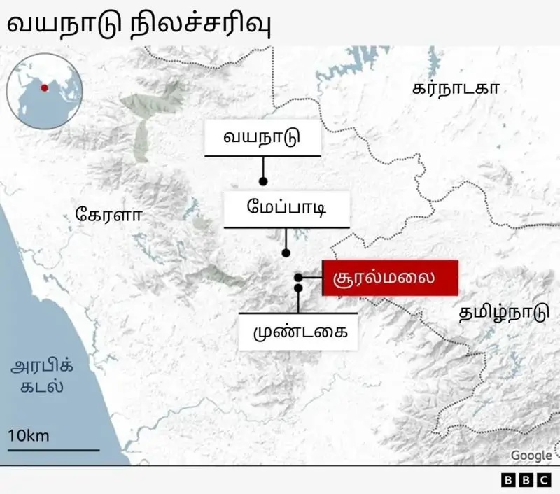 கேரளாவில் தென்மேற்குப் பருவமழை தீவிரமடைந்துள்ள நிலையில் வயநாட்டில் தொடர்ந்து கனமழை பெய்கிறது. நேற்று (ஜூலை 29) கனமழை கொட்டிய நிலையில், செவ்வாய்க்கிழமை நள்ளிரவில் மேப்பாடி, சூரல்மலை, முண்டகை, அட்டமலை உள்ளிட்ட பல்வேறு இடங்களில் கடுமையான நிலச்சரிவு ஏற்பட்டது.